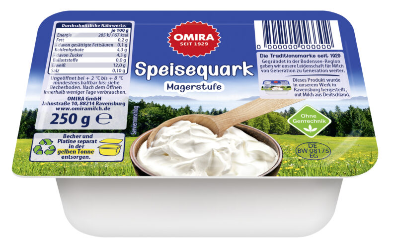 Für alle kalorienbewussten Quarkliebhaber gibt es eine fettreduzierte Variante unseres OMIRA Speisequarks mit Milch.